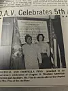 AN ANNIVERSARY SUPPER drew some 50 people to commemorate the fifth anniversary of the Chapter 24 founding of the disabled American Veterans. The occasion also marked the fourth anniversary of the D.A.V. Auxiliary. Commander Cristoval Pinos served as master of ceremonies for Chapter 24, and his wife, Cristella, as Commander of the Auxiliary. Members and guests met in the American Legion Hut on Oct. 17th for the occasion, with food prepared by the Auxiliary unit.
