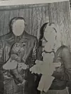 TWO ADULTS compare their childhood Pooh Bears- the well known story about Christopher Robin and the bear, Pooh, written by A. A. Milne was copyrighted in England in 1926. Lance Bailey, also born in England, is holding the original Pooh bear which he received when first born 35 years ago. With him is Marjri Klipsch who received a later version of the Pooh bear from her sister, Phyllis, 17 years ago. New Pooh is featured on many novelty items and clothing in addition to being a stuffed toy.