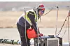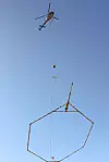 Maxime Paquet talks to Stacy Timmons and Frank Sholedice of the New Mexico Bureau of Geology & Mineral Resources about the large electromagnetic sensor while they stop at the Socorro Airport to refuel on Tuesday. The low-flying helicopter has been mapping underground water resources in Socorro County.